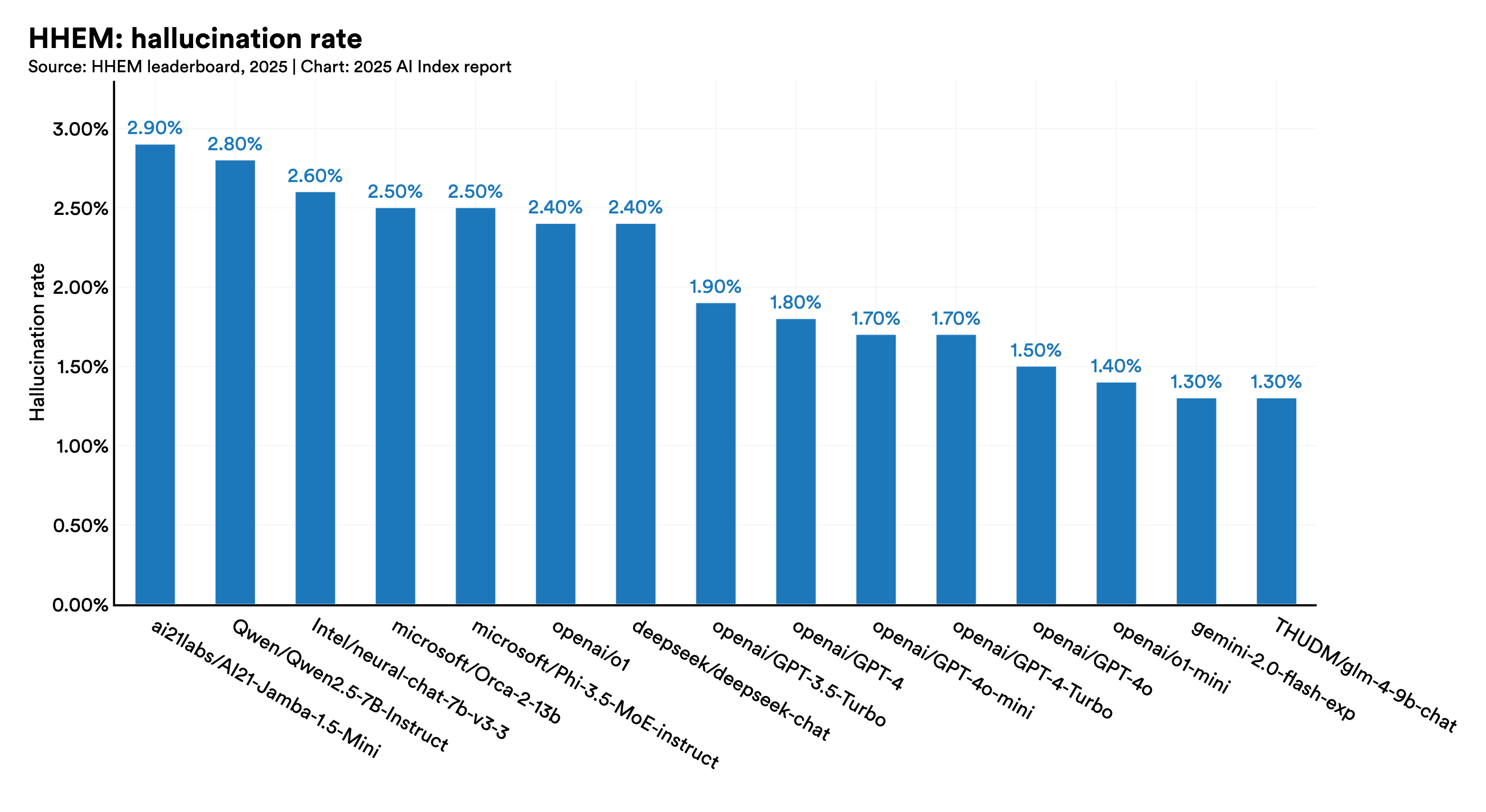 Der Stanford AI Index 2025 hält fest, dass standardisierte Benchmarks für Responsible AI bei LLMs weiterhin selten sind; zugleich entstehen erst nach und nach bessere Benchmarks für Faktentreue und Wahrhaftigkeit.[