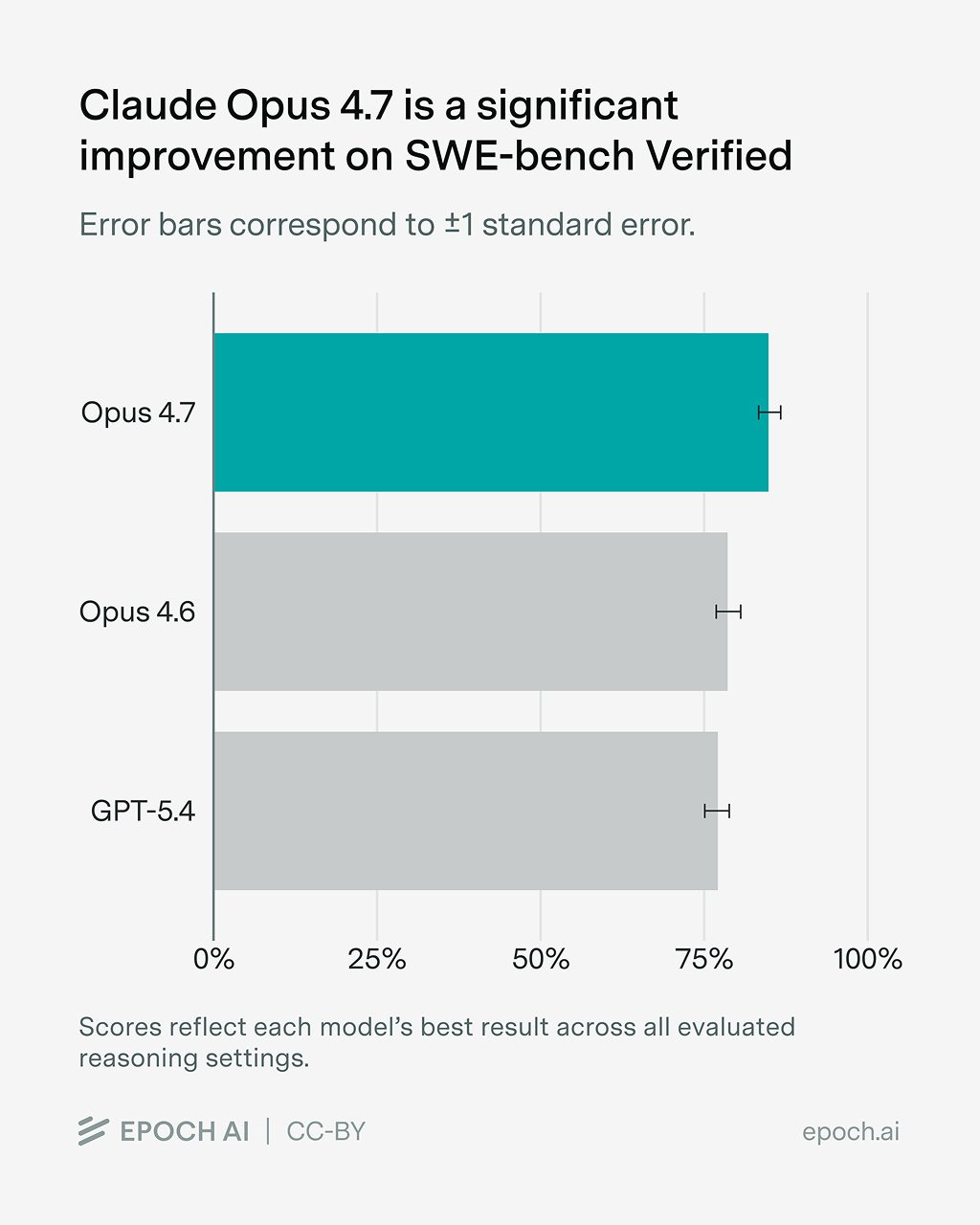 - Die öffentlich auffindbaren Benchmark-Werte für Claude Opus 4.7 sind nach den gefundenen Quellen vor allem 87,6 % auf SWE-bench Verified und 94,2 % auf GPQA. Anthropic beschreibt Opus 4.7 außerdem als sein stärkstes allgemein verfügbares Modell; ein weiterer Treffer nennt 80,5 %
