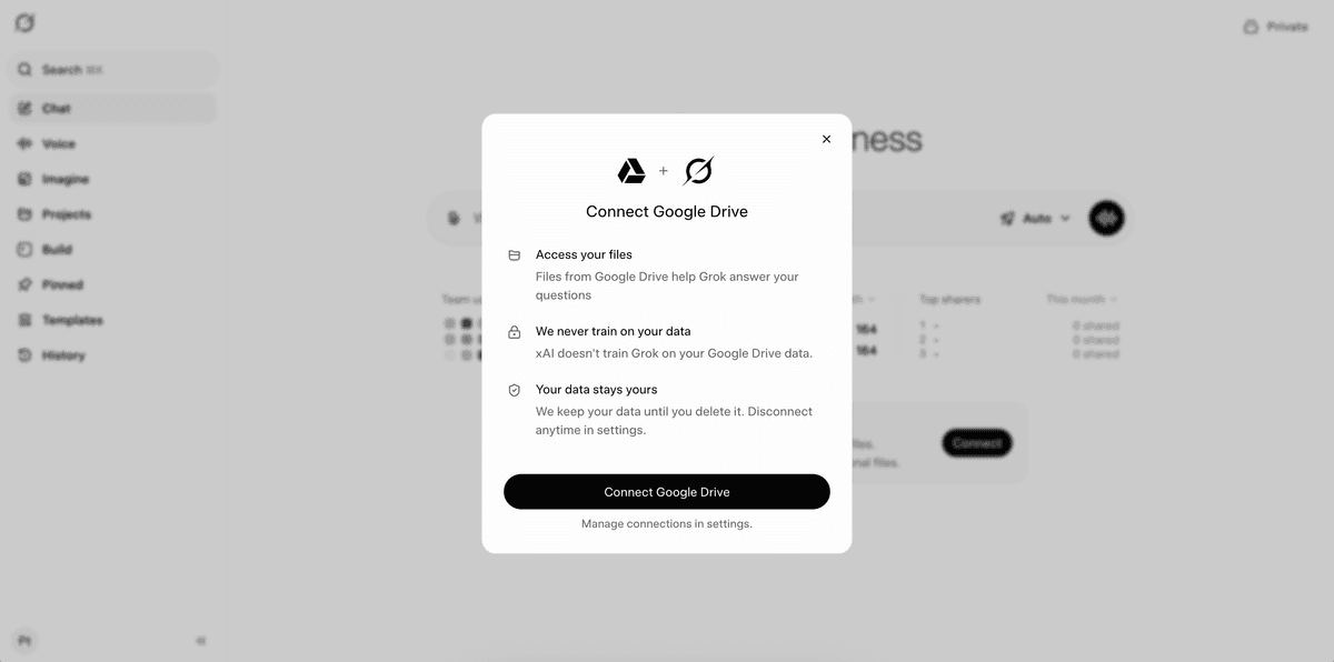 - xAI documents a Google Drive integration for Grok that lets users search and reference personal and team shared Drive files inside Grok chats.[