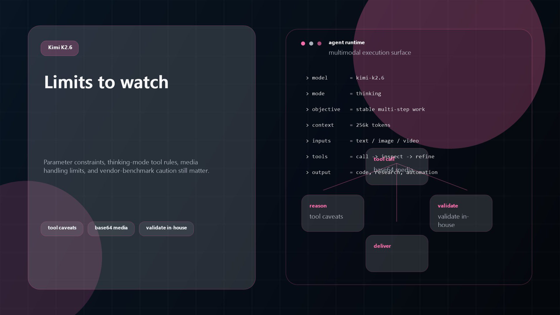 Nếu bạn muốn, tôi có thể viết tiếp cho bạn một bản checklist production ngắn cho Kimi K2.6 theo 3 phần: auth, adapter code, và eval/guardrails.