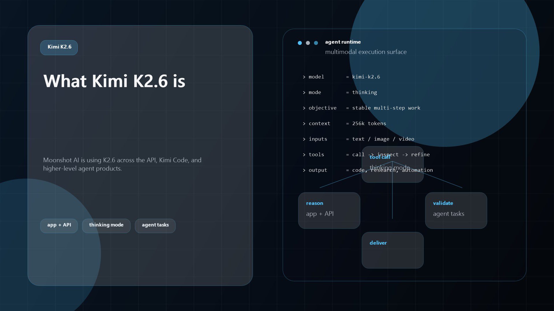 8] Với app/production workflow, hướng rõ ràng nhất là API chính thức vì Kimi xác nhận có OpenAI-compatible HTTP APIs, dùng được OpenAI SDK, và có quickstart riêng cho K2.6. [