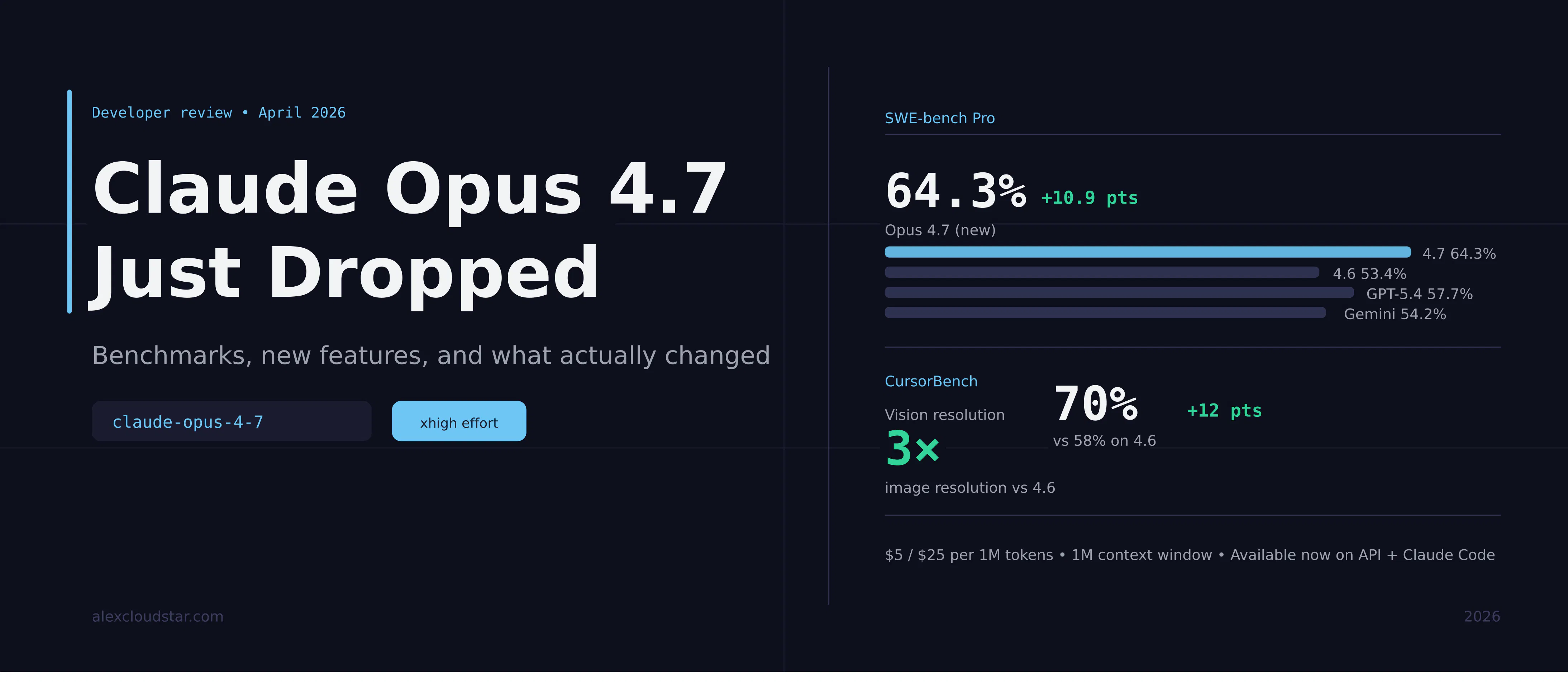 Apr 16, 2026. Claude Opus 4.7 brings stronger performance across coding ... The step up from Opus 4.6 is clear, and the codebase is public. Sean Ward