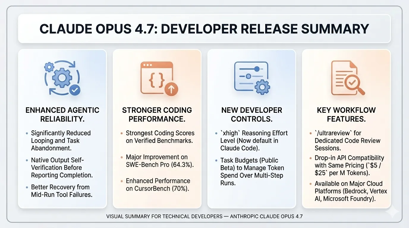 Anthropic officially launched Claude Opus 4.7 as its newest top-tier Opus model, positioning it as better at long-running work, coding, instruction following, self-verification, computer use, and knowledge work than Opus 4.6, while keeping list pricing unchanged at $5 / $25 per million input/output tokens according to user summaries and launch discussion [@claudeai, @kimmonismus]. * Anthropic also launched or highlighted task budgets in public beta, i.j4i.i2